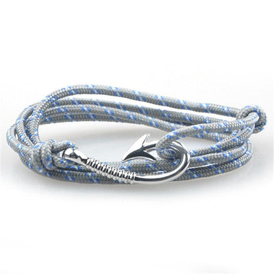 Nautical Light Grey Patterned Hook Bracelet (Silver)